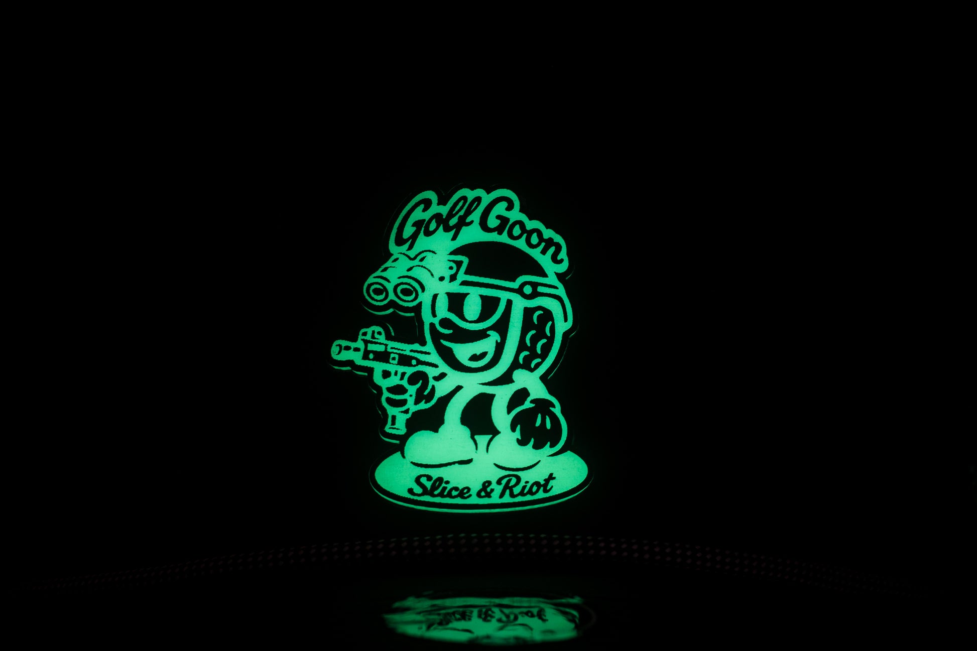 Same bold design as the tee, but now it’s front and center where it belongs, with a glow-in-the-dark patch that lights up when the sun goes down. This isn’t just headwear; it’s a warning label for anyone standing between you and the next drive.